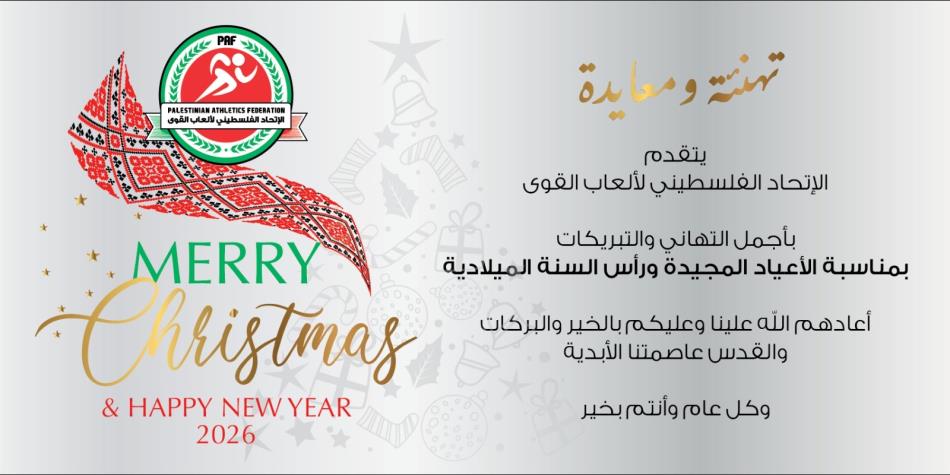 تهنئة مقدمة من الاتحاد الفلسطيني لالعاب القوى باحر التهاني لشعبنا وامتنا